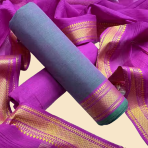 Navy Pink Glow Mangalagiri Cotton 3-Piece Suit with Lining