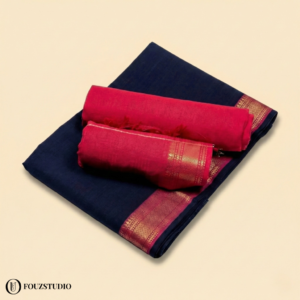 Mangalagiri Cotton 3-Piece Unstitched Suit Set – Navy Blue...