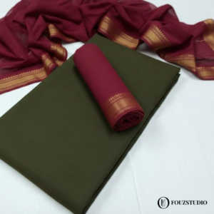 Mangalagiri Cotton 3-Piece Unstitched Suit Set – Mehndi Gr...
